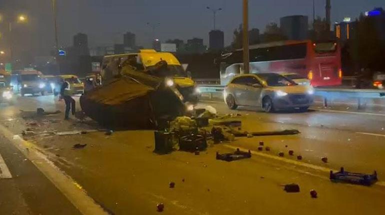 Kaza, Bağcılar, TEM Otoyolu Mahmutbey gişeler istikametinde hafriyat kamyonu, kamyonet ve servis minibüsünün çarpışması sonucu meydana geldi. Kazada sebze yüklü kamyonet kullanılamaz hale gelirken, Edirne istikametine trafik durma noktasına geldi.