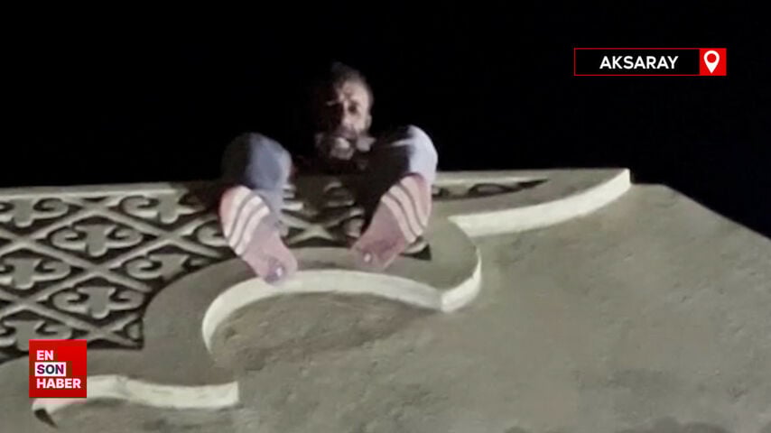 Aksaray’da alkollü sürücü 35 metre yükseklikteki sembole çıktı