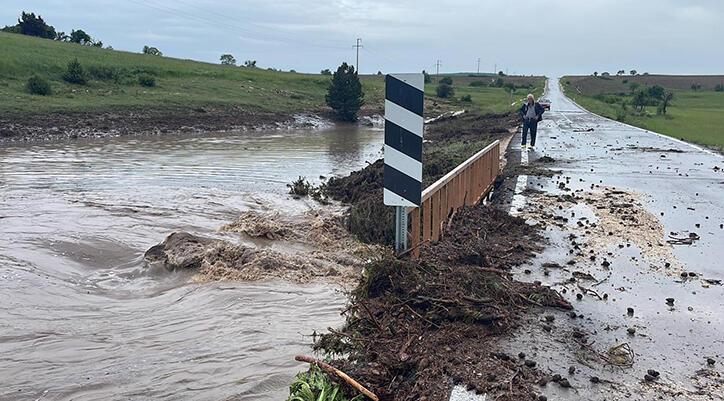 Eskişehir’in Sarıcailyas Mahallesi’nde sağanak sonrası meydana gelen sel, yıllardır akmayan dereyi taşırıp karayolunda çökme tehlikesi oluşturdu.